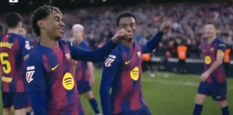 进球之后,亚马尔先是滑跪庆祝,随后与巴尔德一起翩翩起舞。